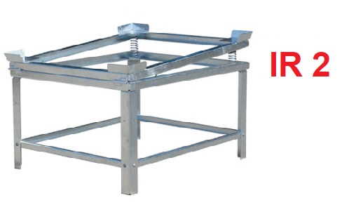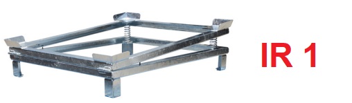 IR-1: kiepframe met veiligheidshoeken, steunpoten. Geschikt voor montage op een stalen IBC-lekbak.