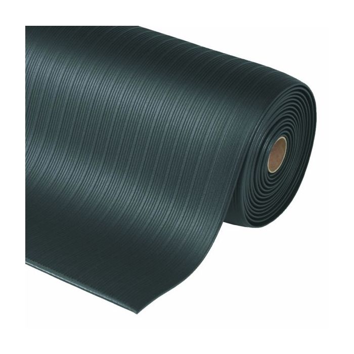 Ribbel profiel versterkt de slipvastheid. Samengesteld uit een ergonomisch microcellulair vinylschuim van 9,4 mm dikte met miljoenen luchtbellen. Deze mat geeft de werknemer een basis comfort. Rondom met afgedichte en afgeschuinde randen om struikelgevaar te voorkomen.
