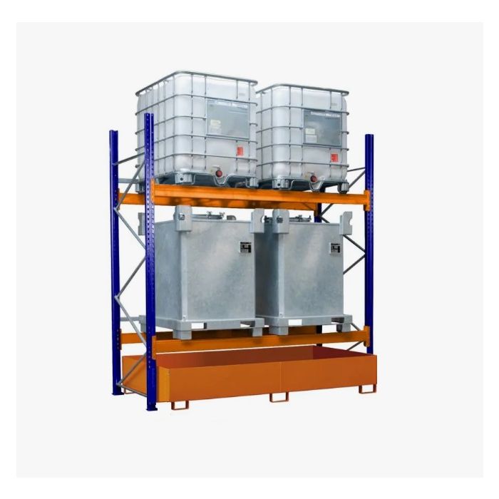 Opslagstelling geschikt voor het veilig en efficient opslaan van vloeistofverpakkingen / IBC's Maximale draaglast 3.000 kg.