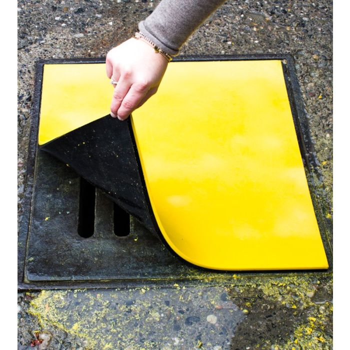 Voorkom dat vloeistof het riool inloopt. Door het unieke urethaan materiaal plakt de mat tijdelijk aan elk glad oppervlak zoals stelconplaten en stalen putten.
