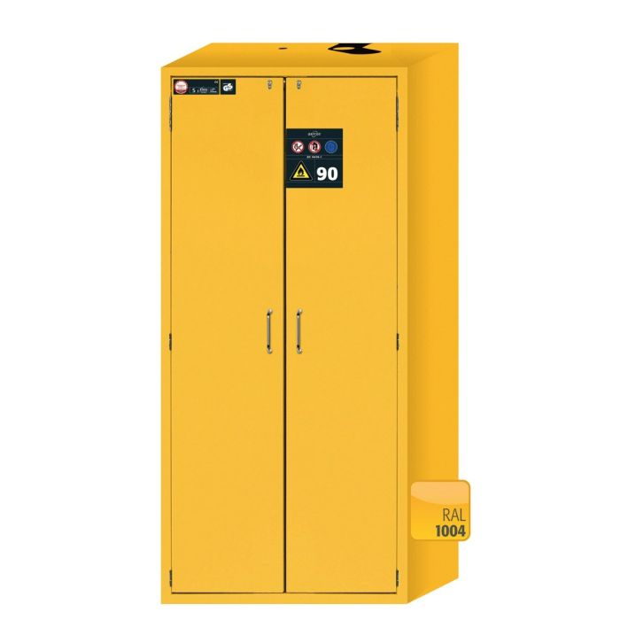 Veiligheidskast voor opslag van gevaarlijke (lichtontvlambare) stoffen op de werkplek, behorende tot de ADR klassen: 2, 3, 4.1, 4.2, 4.3, 5.1, 5.2, 6.1 en 8, volgens actuele regel- en wetgeving (PGS 15, ARAB, CODEX, VLAREM).