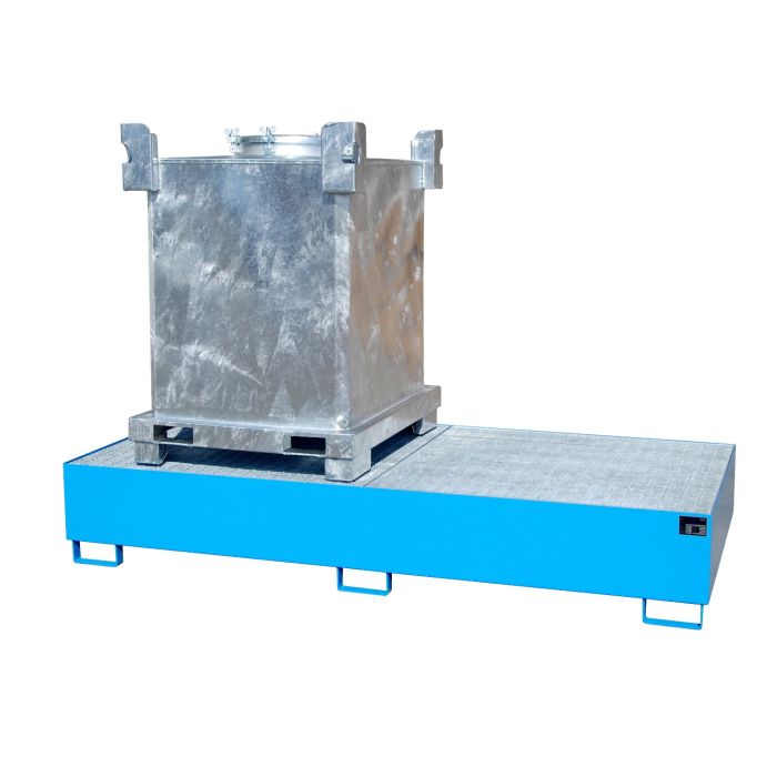 Staal gelakteĀ IBC lekbak voor 2 stuks IBC / KTC van 1.000 ltr. Voor een veilige opslag van verpakte gevaarlijke stoffen overeenkomstig PGS 15 (voorheen CPR 15-1), VLAREM, ARAB, CODEX
