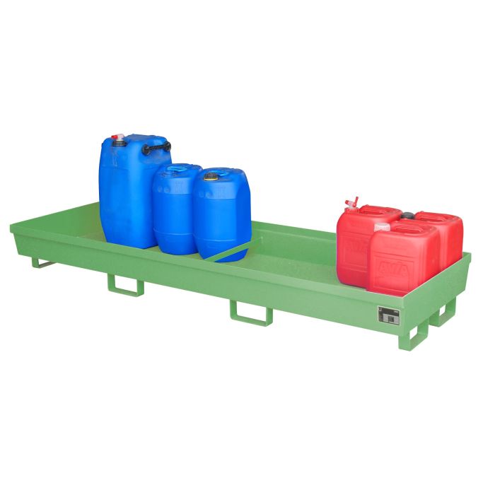 Gelakte lekbak zonder rooster. Voor een veilige opslag van verpakte gevaarlijke stoffen overeenkomstig PGS 15 (voorheen CPR 15-1), VLAREM, ARAB, CODEX