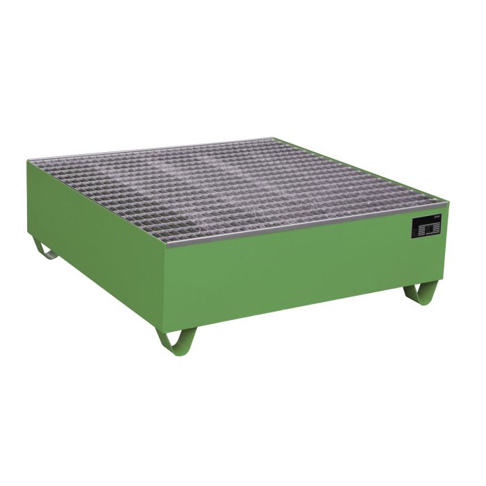 Gelakte lekbak voor 4 vaten van 200 liter of klein emballage. Voor een veilige opslag van verpakte gevaarlijke stoffen overeenkomstig PGS 15 (voorheen CPR 15-1), VLAREM, ARAB, CODEX