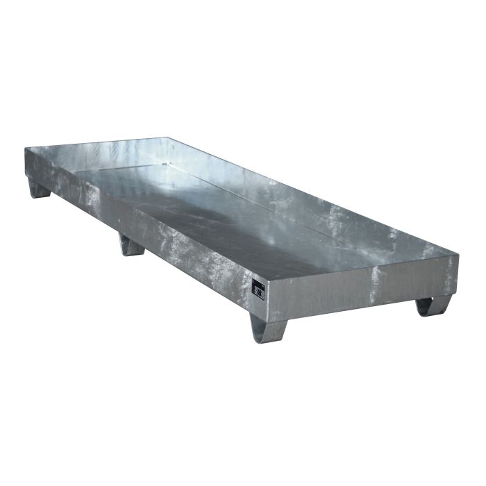 Stalen verzinkte lekbak, zonder rooster. Voor een veilige opslag van verpakte gevaarlijke stoffen overeenkomstig PGS 15 & VLAREM.