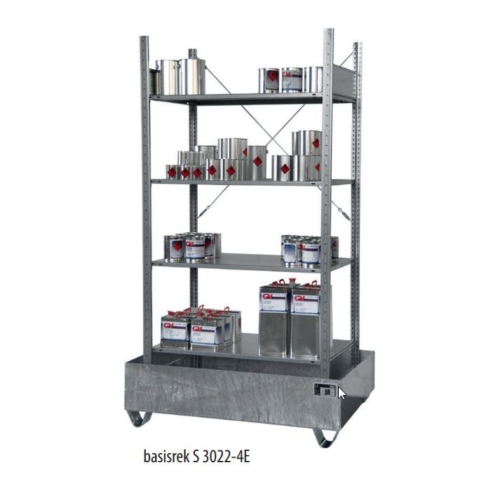 Stellingrek met 4 legborden en verzinkte lekbak